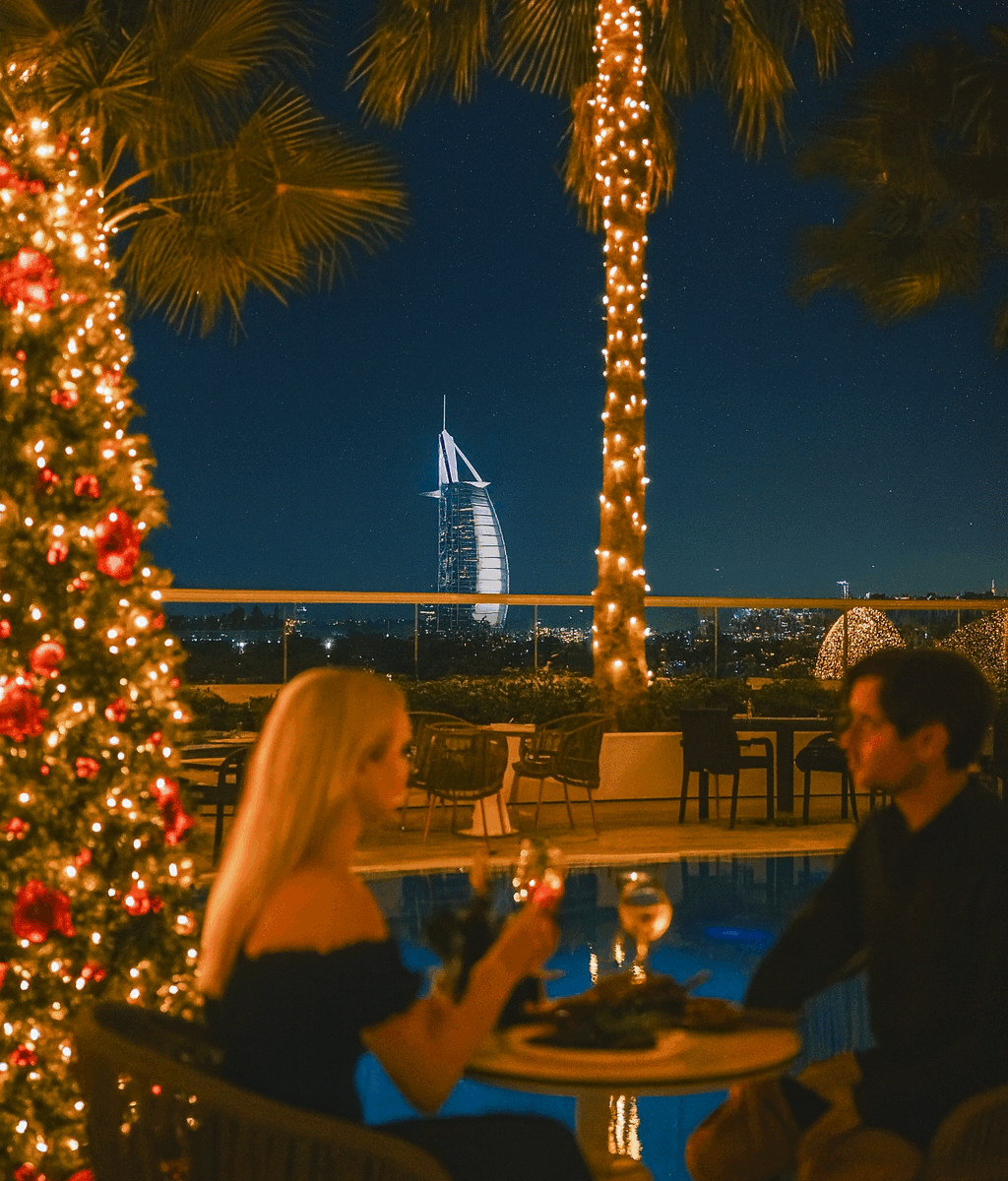Celebrate Christmas Eve under the stars at Deck Se7en, where festive flavours, twinkling lights, and joyful moments come together by the pool. Set against the winter skies of Dubai, enjoy a generous Christmas buffet while soaking in the relaxed, seasonal atmosphere with family and loved ones.